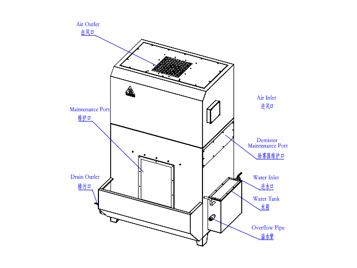 ภายใต้ความดันลบที่สร้างขึ้นโดยพัดลม ก๊าซที่มีฝุ่นเข้าสู่โมดูลการกรองน้ำ และสัมผัสใกล้ชิดกับของเหลว (โดยทั่วไปคือน้ำ) ผ่านการกระแทกเชื่อถือระหว่างหยดน้ำและอนุภาคฝุ่นและกลไกการเก็บรวบรวมอื่น ๆ อุปกรณ์จับอนุภาคของเหลวหรือของแข็งที่มีเส้นผ่าศูนย์กลางใน3-30 ไมโครมช่วงและยังกำจัดสารมลพิษก๊าซบางอย่าง น้ำถูกดึงขึ้นโดยการไหลของก๊าซ ร่วมกับหน่วย deflector และ demisting การแยกก๊าซ-ของเหลวเกิดขึ้นและของเหลวกลับไปยังถังบรรลุการหมุนเวียนน้ำฟรีปั๊มระบบบรรลุประสิทธิภาพในการทำความสะอาดของ ≥90% สำหรับอนุภาคขนาดใหญ่กว่า 10 μm.